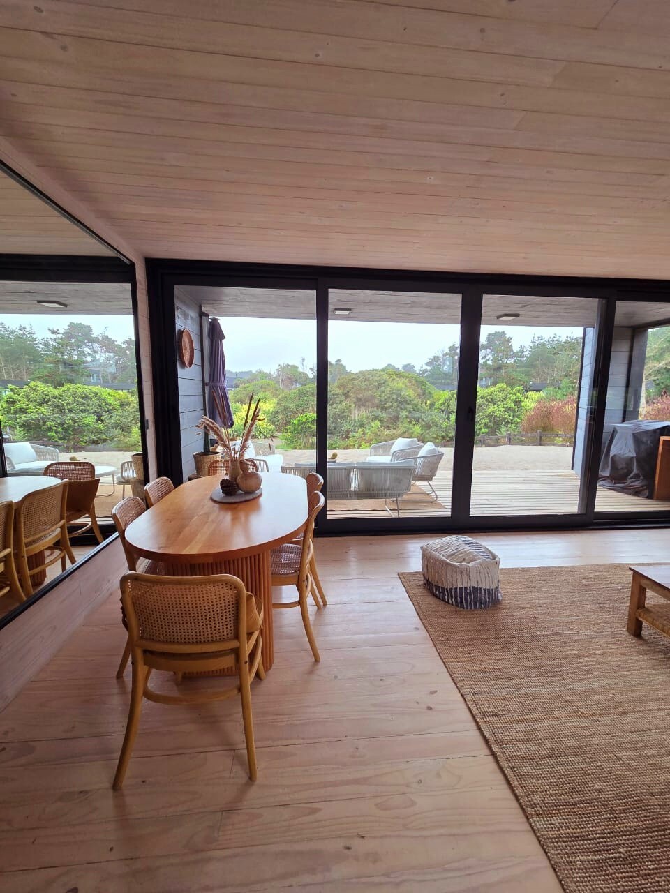 Casa Maqui Pichilemu: Ecological Refuge with Spectacular Views. Between Pichilemu and Cahuil, in an ecological reserve, with sea views and magical sunsets. Design: Fine finishes, double-pane windows, spacious living room, and open kitchen. Heating: Pellet stove. Outdoor: Terrace with table, hammock, grill, and fire pit. Capacity: For 6 people. Privacy: Two independent houses. Nature: Beautiful trail in the reserve. Car recommended for arrival.