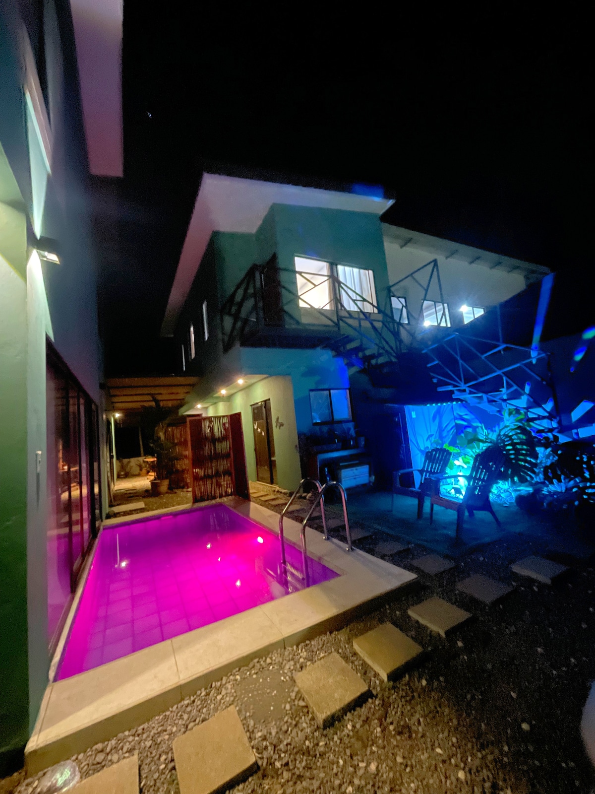 Take the whole family to this fantastic place with many areas to have fun. Bike trails, running trails. etc. Just 2,900 feet (1km) from the beach. Playa Hermosa has been designated as the World Surfing Reserve of Latin America. A rooftop outdoor pool with terrace and BBQ place. 3 rooms, 3 beds, 3.5 bathrooms and a large living-dining room overlooking the forest. Restaurant and Bar at Glamping Hotel available. Close to Manuel Antonio and Jaco Beach.