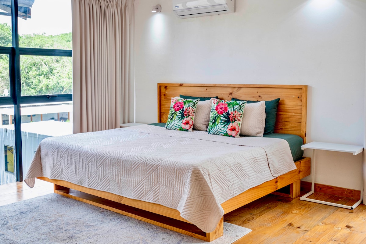Es un lugar único con mucho estilo y elegancia, muy cerca de Jaco centro y a la vez retirado de los ruidos nocturnos, todo lo que quieras está a pasos de distancia… Este lujoso apartamento está recién construido en Julio de 2024, está rodeado de mucha vegetación en un zona muy segura de Jaco. El apartamento tiene 72mts2, con dos habitaciones con camas Queen y baño privado en cada cuarto, cocina de lujo súper equipada, una hermosa terraza con Jacuzzi y estacionamiento privado.