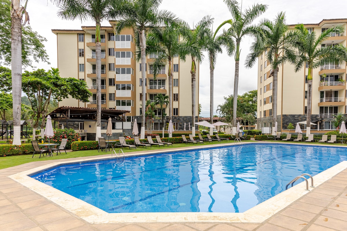 Veranda Paradise is a 2 bedroom 2 bathroom condo located in Los Sueños one of the best communities in Costa Rica. You will be greeted with Spanish architecture and a very cozy decored place with hand painted bird crafts across the condo all planned out to get your vacation going! You will have 2 terraces, a beautiful garden view, fully equipped kitchen, WIFI and smart TV's in all rooms. There are 5 pools with Jacuzzis to choose from, BBQ, a Gym with A/C, Beach club access, marina, golf and more