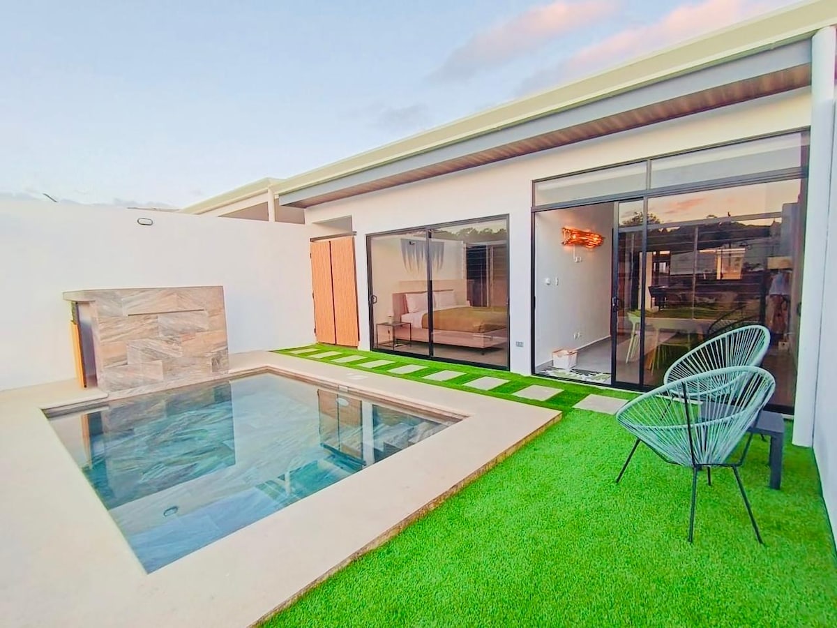 Three Bedroom Villa with your own private pool outside the main living space. Located inside the beautiful, secure, gated community of Condominium Arenas in Playa Herradura. Just minutes from the beach and Jaco. Enjoy the private pool and 2 community pools steps away. Enjoy recreation areas, a gym, a dog park, and a nature trail all on property. Within 10 minutes enjoy, ATV 4 Wheeling, ZipLines, waterfalls, monkeys, horse back riding, fishing, Los Suenos Resort, surfing. We allow 2 pets.