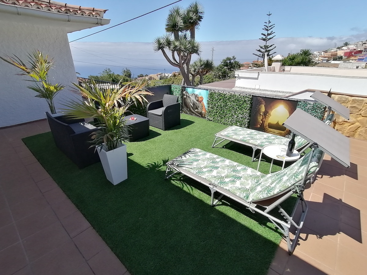 Reformado y elegante apartamento con vistas al mar. Acogedor y romántico. Dotado con todas las comodidades; Equipo de música con USB y Bluetooth, Televisión de 43", NETFLIX, Disney+ y Satélite. Terraza privada con bonito porche perfecto para disfrutar de una velada a la luz de las velas, también pequeño y coqueto jardín también privado. Piscina comunitaria a tan solo 10 pasos, con preciosas vistas al mar y al Puerto de la Cruz. GARANTIZAMOS LIMPIEZA, HIGIENIZACIÓN Y CONFORT.