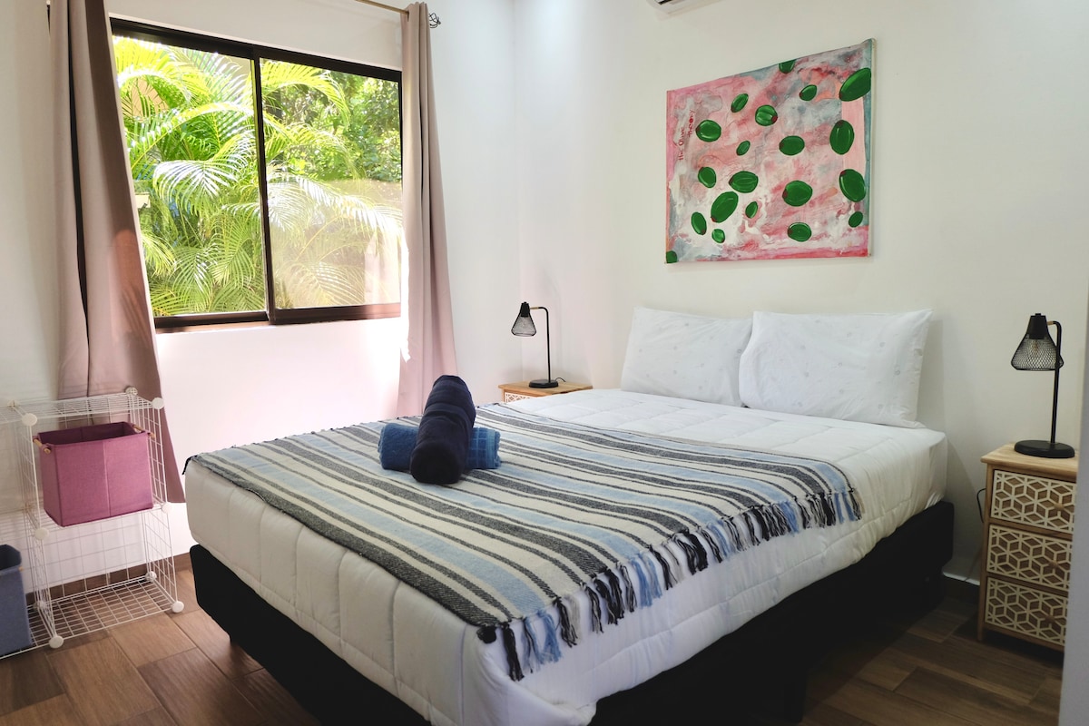 Casa Mar is a cozy one-bedroom with A/C, living room fan, and 100 Mbps fiber WiFi. Just 3 - min drive from Guiones town and top surf spots, it offers both convenience and tranquility. A car is recommended, though a brand-new supermarket is within walking distance. Surrounded by nature and local families, it’s the perfect spot to relax after surf or yoga. Featured by Forbes as one of Costa Rica’s “10 Best Airbnbs” in 2024.