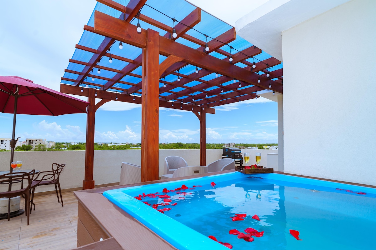 Relájate en este espacio tan tranquilo y elegante. Apartamento Rooftop con Jacuzzi privado, vista al mar y a la ciudad. A cinco minutos de playa caleta y de los principales atractivos de la ciudad. 👀👀 **ESTAMOS UBICADOS EN UN QUINTO NIVEL, NO CONTAMOS CON ASCENSOR** NUESTRO JACUZZI NO TIENE CALENTADOR