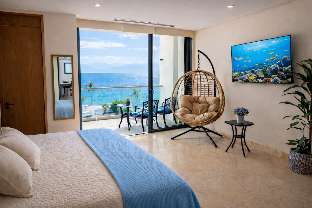 Casa Perla is a new build/ newly furnished penthouse that blends elegant design and comfort—and ocean views that refuse to be ignored. Steps from the beach, it’s perfect for a romantic escape, family getaway, or inspired remote work. Lounge on your private wraparound balcony, soak up the sun on two exclusive loungers, and let airy high ceilings and sun-filled spaces show you what true glamour feels like. Minutes from Bucerías’ art, tacos, and local culture—experience Riviera Nayarit’s finest.