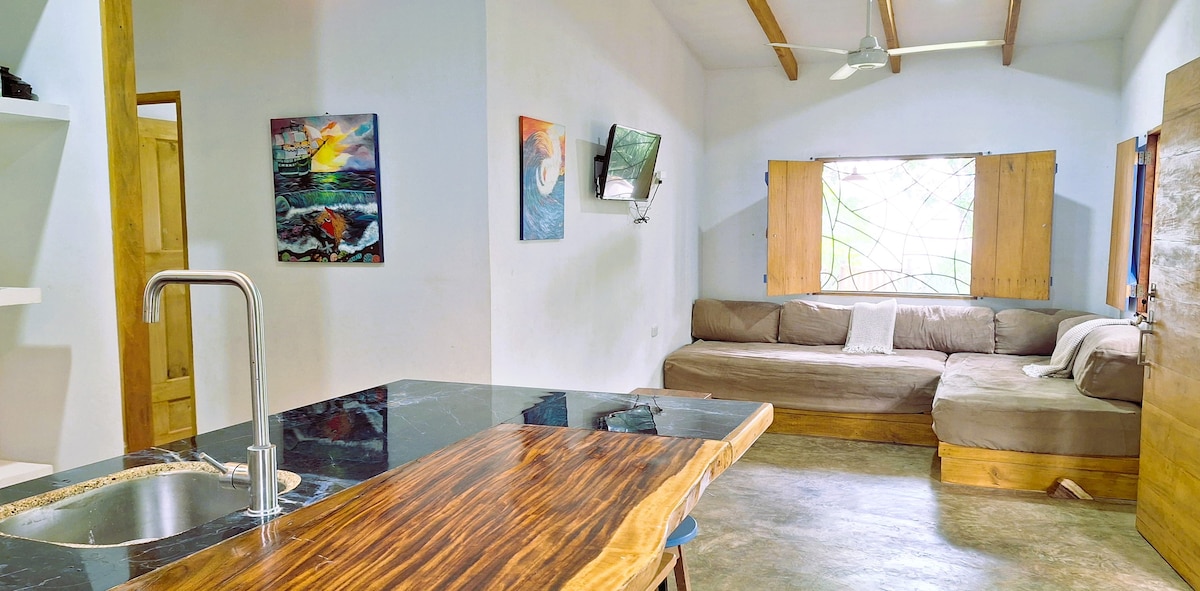 Private beach apartment in Playa Guiones. Perfect location - the beach is 3 min walk. Restaurants, surf shops, Gilded Iguana surf club 2 min walk, mini market, bike, ATV rentals within 5 min walk - you will be in the heart of Guiones. Simple & clean apartment with everything you need. You will have discounts on restaurants, spa, yoga classes via Surf Shack. Noise: as the location is central you might experience some noise from the street during the day, hotel nearby has DJ music on Saturdays.