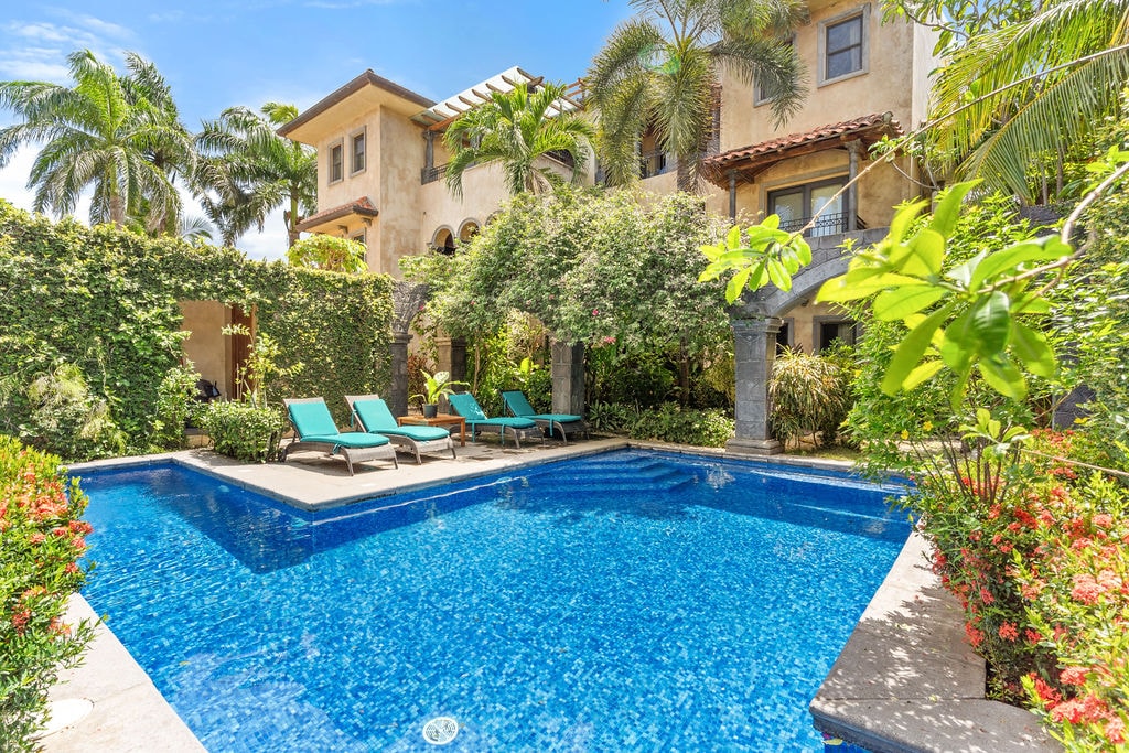 Just steps from Playa Langosta and a short walk to Tamarindo, this villa is your perfect Costa Rican escape! Walk to surf spots and vibrant restaurants, or unwind with two private pools. Inside, a chef’s kitchen and open living spaces await. The main floor features a luxe primary en-suite bedroom and office, while upstairs offers two spacious en suite rooms. The rooftop boasts a plunge pool, BBQ, hammock, and stunning views. Plus, enjoy concierge services, 24-hour security, and easy tour access.