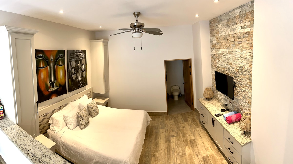 This lovely adults-only studio is located in beautiful Las Catalinas, a charming Mediterranean-style town with a beach club, a minimarket, restaurants, shops, pedestrian-only streets, a beautiful beach for kayaking, paddle boarding, and trails for hiking and mountain biking. The apartment is just a 1-minute walk to the Beach Club and a 5-minute walk to the beach. Beach Club access is included during your stay. The studio has its independent entrance.