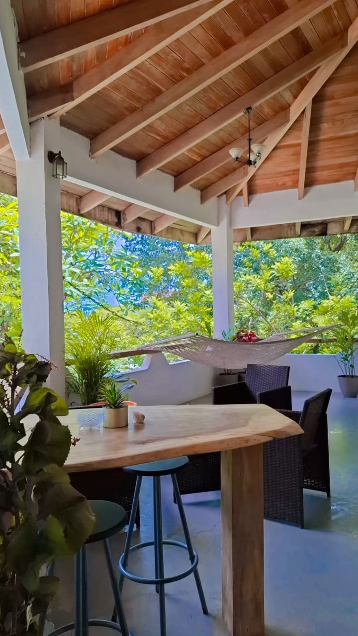 Glamping Dome surrounded by nature & wildlife with panoramic mountain & ocean views. ● The areas: ☆ Parking ☆ Hammocks area ☆ Tiny pool under the trees. ☆ 1st floor terrace with kitchen, bathroom & dome ☆ 2nd floor terrace with panoramic views ● Descripción: A fully equipped kitchen with an outdoor barbecue, bathroom with rain shower & hot water, air-conditioned room, tiny pool under the trees, area with hammocks to relax, terrace with panoramic view, WIFI, private parking & security cameras.