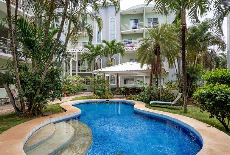 This peaceful oasis is minutes walk to town and beach. This 2 BR / 1 BA jewel is nestled in nature surrounded by trees. Unit #3 is located on the ground level facing the large pool and has a covered balcony to enjoy outdoor living, relax and take in the views. Fantastic restaurants, shopping and the local grocery market are just around the corner. This unique gated property combines all the best that Tamarindo has to offer to make your holiday vacation Pura Vida.......See you soon!
