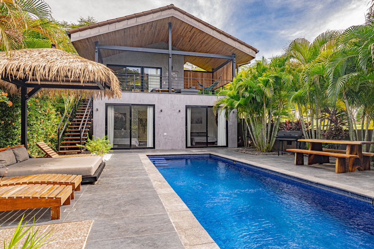 Villa Enrico - Beautiful standalone villa just 100 meters walk from Playa Langosta in Tamarindo. Features a private pool surrounded by beautiful landscaping, sun terrace, BBQ area with outdoors dining, and open-concept living with a large kitchen island. Includes 3 bedrooms, 2 full bathrooms, AC throughout, private parking for 2 cars, 2 bikes, laundry area, and complimentary concierge services. Perfect for up to 8 guests. Great location with quiet surroundings and just a short walk to Tamarindo