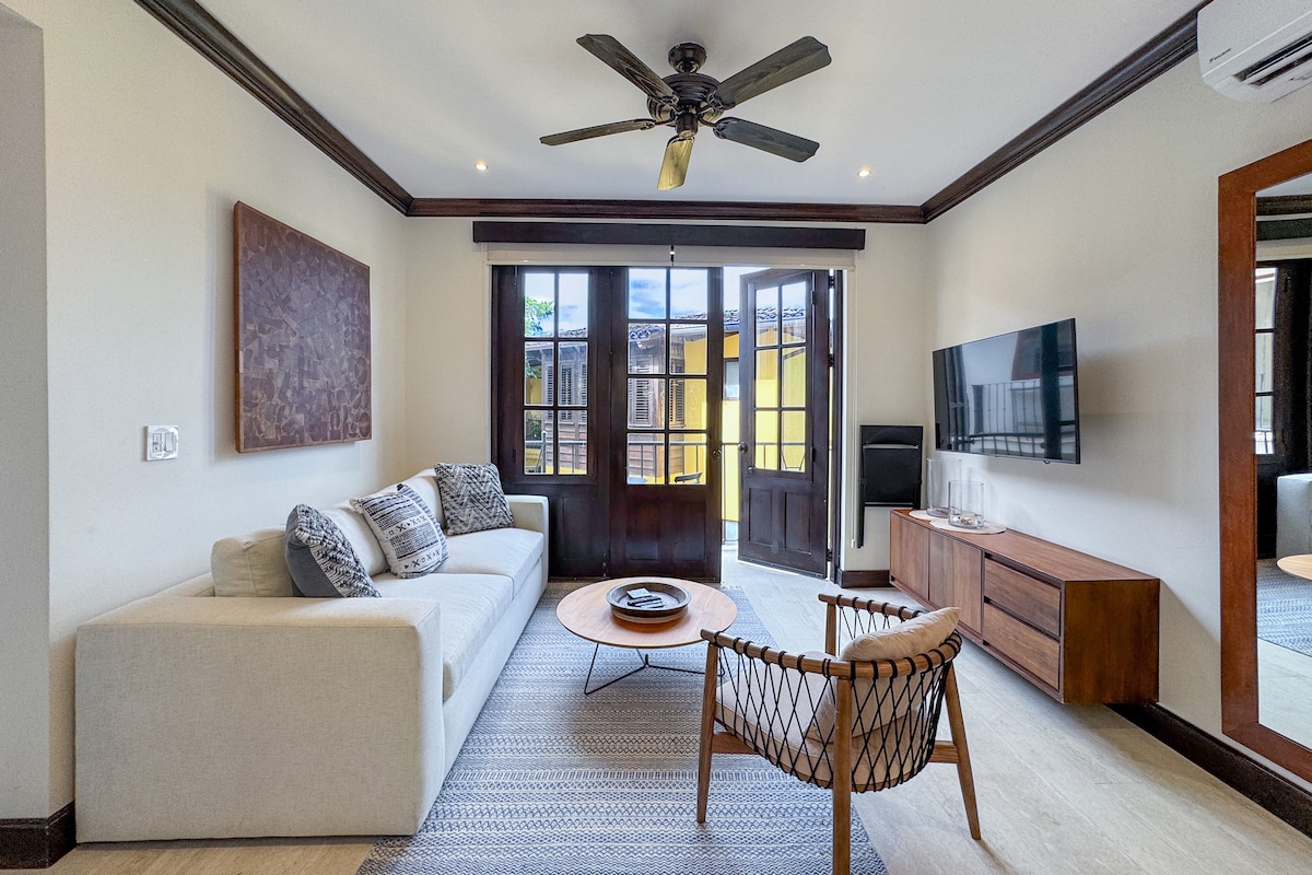 Immersed in nature, this is a brand new stylish and modern unit. Detailed with an exclusive rustic touch, we offer a unique dine and wine experience in our magical treetop terrace. Located downtown, yet in a quiet neighborhood, you will find yourself 5 minutes away (walking distance) from the pristine beach of Tamarindo. 2BR / 2BA, AC, fully equipped kitchen, terrace, outdoor treetop dining experience, free parking on premises. Take it easy at this unique and tranquil getaway.
