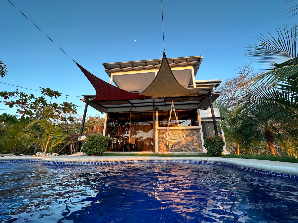 Nouvellement rénovée. Séjournez dans une superbe villa avec piscine à débordement privée, située dans une communauté sécurisée, proche des plus belles plages du Costa Rica. Entièrement rénovée en 2025, elle offre confort moderne et vue imprenable. • 2 chambres climatisées avec salles de bain privées • Espace ouvert avec cuisine équipée et salon cosy • Salle à manger extérieure pour admirer des couchers de soleil spectaculaires • Wi-Fi, alarme et parking clôturé