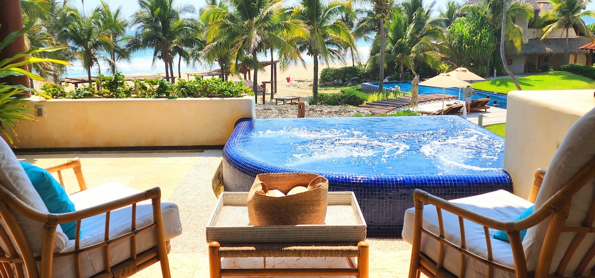 En una de las mejores playas del pacífico, el lugar perfecto para tu descanso. Disfruta de un clima excepcional, privacidad, atardeceres inigualables, escucha el susurro del mar y camina a lo largo de la bahía. Conecta con la tranquilidad de este paraíso. Éste es un acogedor Bungalow frente al mar con alberca, jardines y acceso directo a la playa. Ponemos a tu disposición asador, sillas y sombrillas de playa. A sólo 6 minutos del aeropuerto.