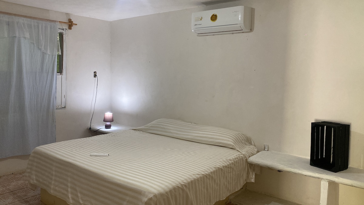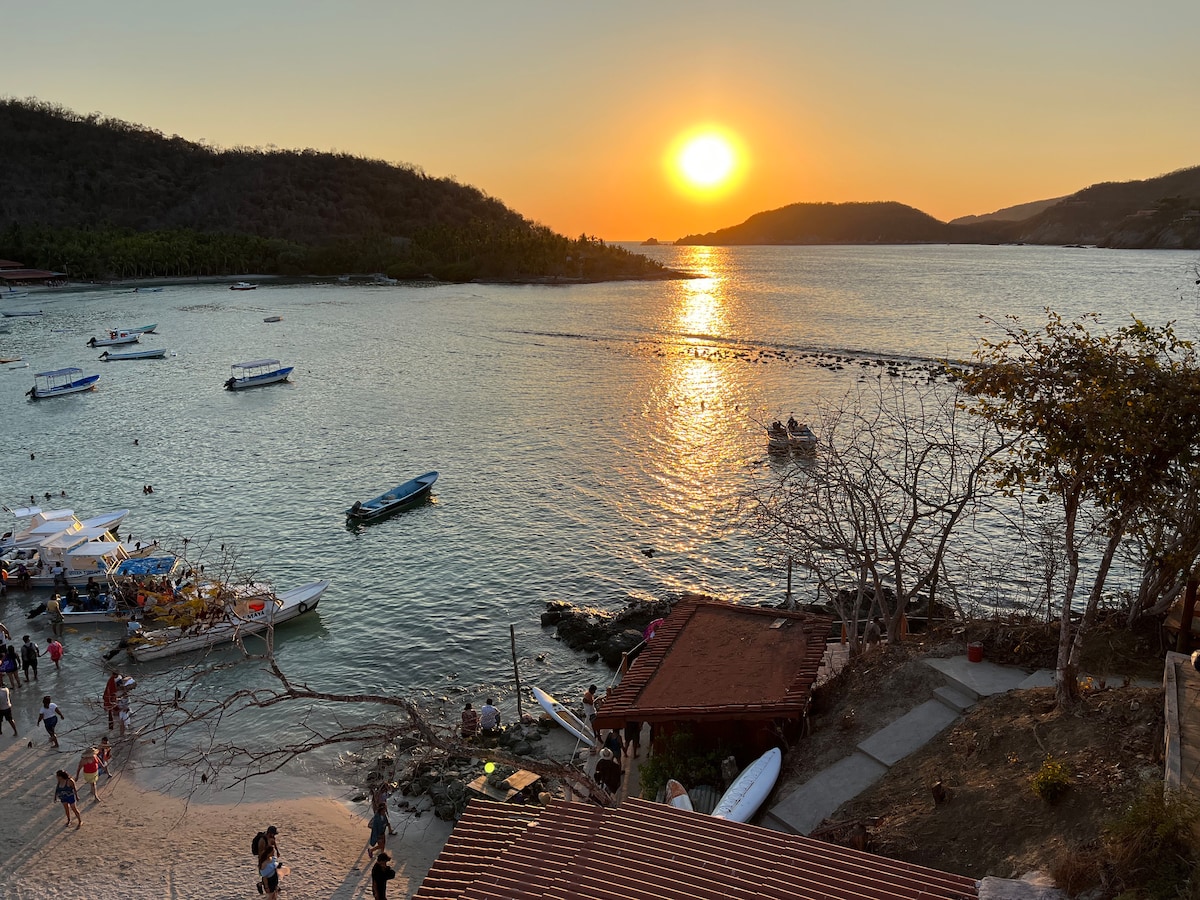Es una cómoda habitación recientemente remodelada, totalmente independiente, ubicada en Playa la Ropa, a solo 40 pasos del mar. Aquí podrás disfrutar de la playa como si fuera el patio de tu casa. Cuenta con aire acondicionado, para esos días calurosos, o si prefieres también cuenta con ventilador de techo. Para cuando estés descansando contaras con una television con conexión a Internet. Además cuenta con cafetera para tu uso exclusivo, y puedas disfrutar de ese café en la playa a cualquier hora. Además de un frigobar, por si prefieres una bebida fría en lugar del café, o guardar el aperitivo para más al rato.
