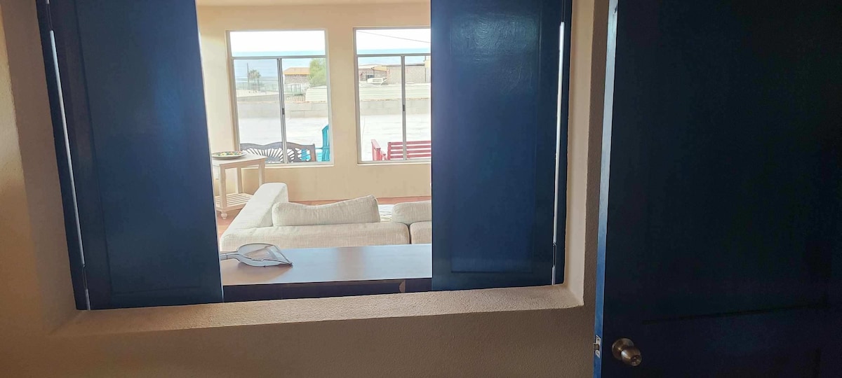 Watch the sunrise or stroll to the beach or the cantina from our Baja Beach Bungalow located in safe and secure Pete's Camp. Just 200 yards from this unique 2 Bedroom house offers clean, comfy sleeping spaces, 2 full bathrooms, beautiful views and plenty of parking. The house has a full kitchen and bedroom #2 has a small mini fridge, sink and microwave separate bathroom. Our place comfortably sleeps up to 9. 3 queen mattresses 1 twin mattress 1 futon 2 sofas