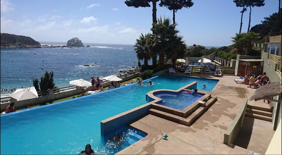 Departamento con vista panorámica. 3 habitaciones, 2 baños, 2 estacionamientos y cocina equipada. Incluye: • Wifi • 2 kayaks • 2 bodyboards • Parrilla Máximo 6 personas. El recinto tiene canchas, juegos, restaurantes y una de las piscinas más grandes del mundo para navegar y practicar deportes acuáticos. Piscinas para baño disponibles: • Fines de semana (31/10-08/12). • Todos los días (14/12-15/03). • Festivos todo el año. Piscinas temperadas y jacuzzi exclusivos para propietarios.