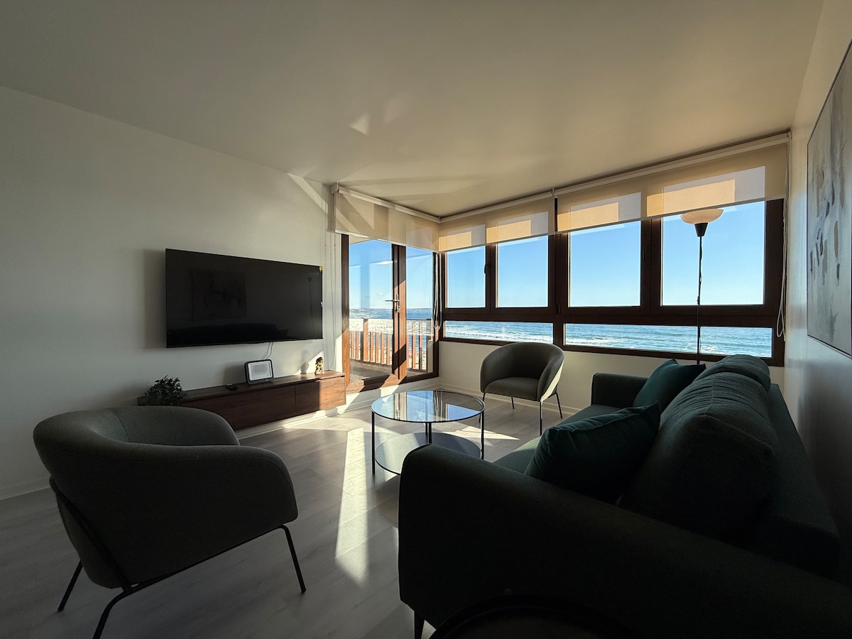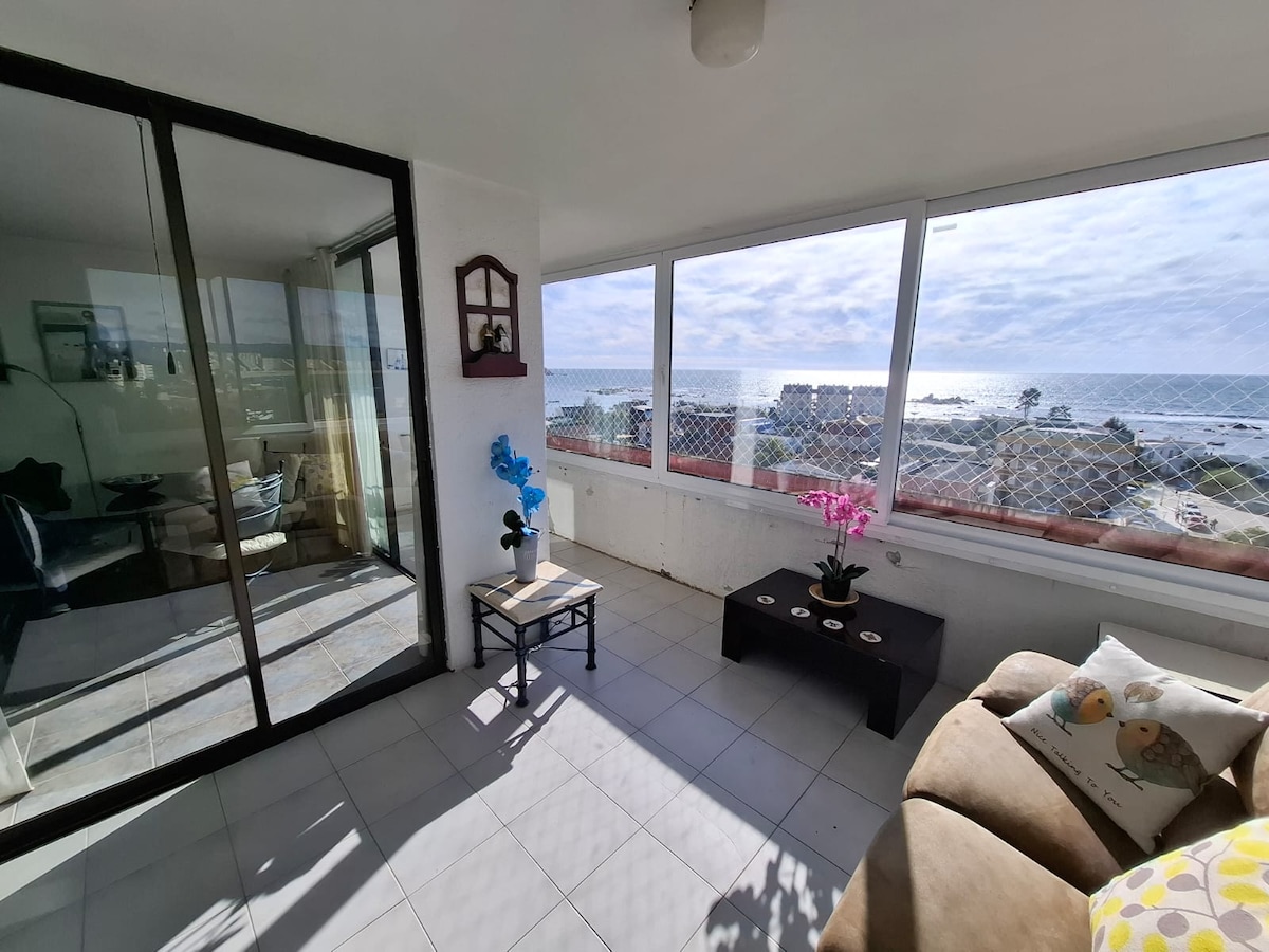 Hermoso y cómodo departamento con vista al mar. 2 habitaciones, 2 baños, amplío Living y terraza. Cuenta con 2 camas de 2 Plazas y 2 camas de 1 plaza. Cocina totalmente equipada. 3 TV con cable, conexión wifi. Acceso directo a playa y sus alrededores para salir a caminar en bosques de pino. Jardines y áreas verdes en el Recinto. Estacionamiento, Piscina, sala de juegos y lavandería. Además cuenta con minimarket muy cerca del edificio.