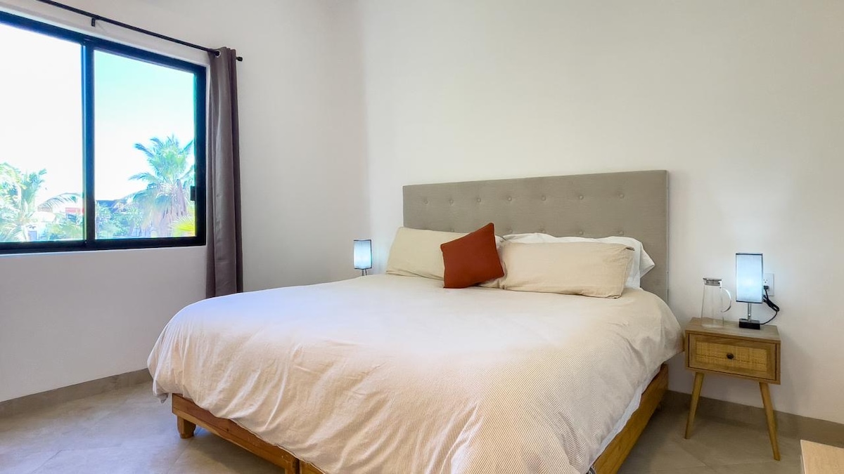 If you are looking for the perfect base for your Cabo explorations, you have found it! This La Jolla studio's beachfront location, cleanliness, and layout make it a good choice for the travelers who are looking for a budget-friendly lodging experience. The entrance is gated with a 24-hr guard to ensure maximum safety at all times. There are two pools, gorgeous landscaping, and a very comfy bed! Walk down the beach to epic surf breaks and various bars and restaurants. Mi condo es su condo!
