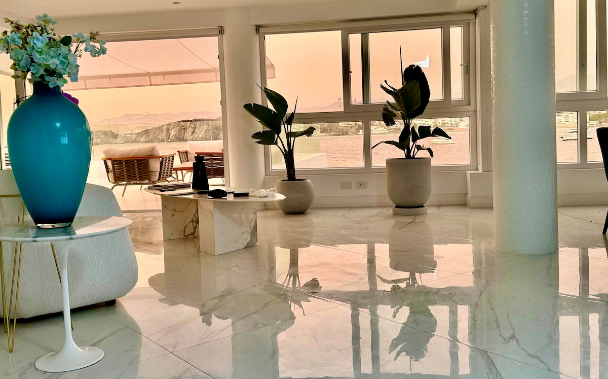 Disfruta de una estancia tranquila y familiar frente al mar. Nuestro departamento de 180 m² para 10 personas ofrece vista panorámica al mar desde todos los ambientes, terraza con poltronas, piscina y parrilla. Ideal para relajarte con familia, amigos y tu mascota =). Para la playa: Incluye toldo en la playa, sombrilla, sillas y paletas. Km 124.6 Playa Los Delfines, entre Playa Honda y Lobos; a 25 min del Boulevard de Asia y 10 min de Cerro Azul.
