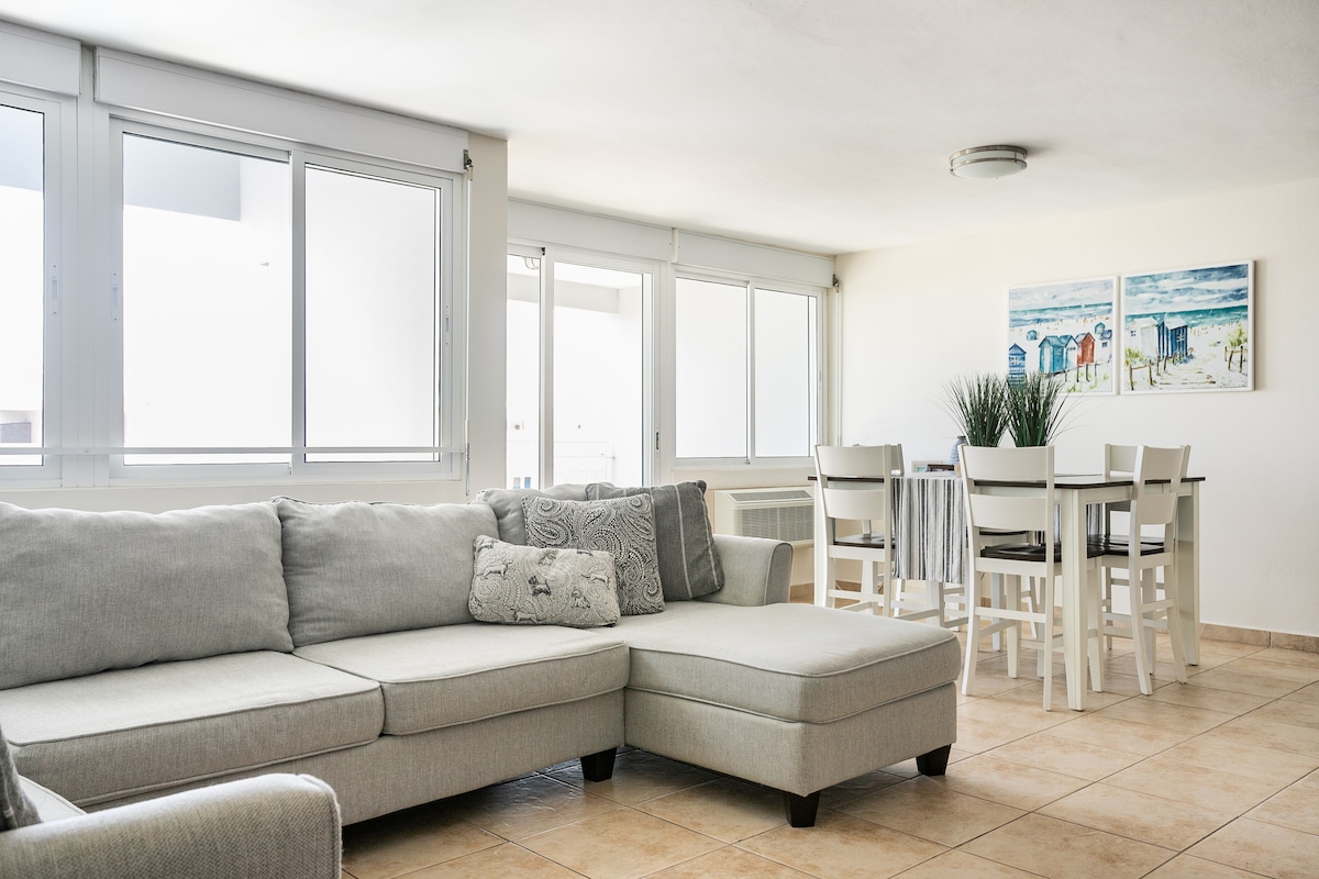 Our apartment is in front of a beautiful, uncrowded, quite beach and is part of a gated community with security guards 24/7, where you can enjoy 2 swimming pools, 2 tennis courts and a playground. This listing is at the feet of El Yunque National Rain Forest. Our neighbor is The Rio Mar Hotel with its Golf Court. You’ll love it for its coziness, views, and tranquillity. Perfect for romantic couples, solo adventurers, business travelers, and families (with kids). NOTE: HAVING A CAR IS A MUST!