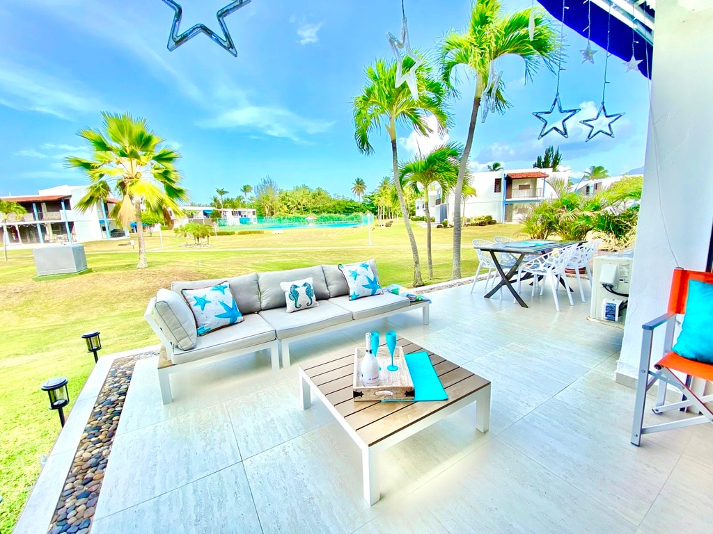 HAPPINESS BEACH APARTMENT is a modern yet cozy retreat with beach access just a 1-minute walk away. Located in a gated community with 24/7 security, it features two pools and a private corner layout on the ground floor with balcony and terrace access. Conveniently close to grocery stores, El Yunque Rainforest, restaurants, malls, and more! Perfect for a relaxing getaway…We continue to follow strict cleaning protocols for your safety.