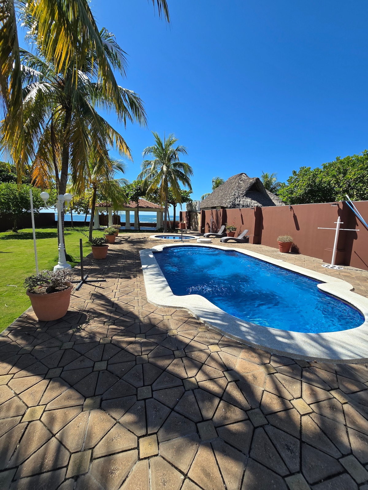 Welcome to Casa de Sueños! Relax at the brand new, oceanfront, luxury Wellness Villa located right on the Pacific Ocean in Santa Isabel Ishuatan, Sonsonate, El Salvador. This high-end oceanfront property features 4 spacious bedroom suites overseeing endless ocean views, pool and tropics. Take daily sunrise and sunset walks on the beach. Enjoy complimentary breakfast buffet and fresh fruit straight from our garden. Massage, yoga, surf & more Ideal location for private & corporate rentals.