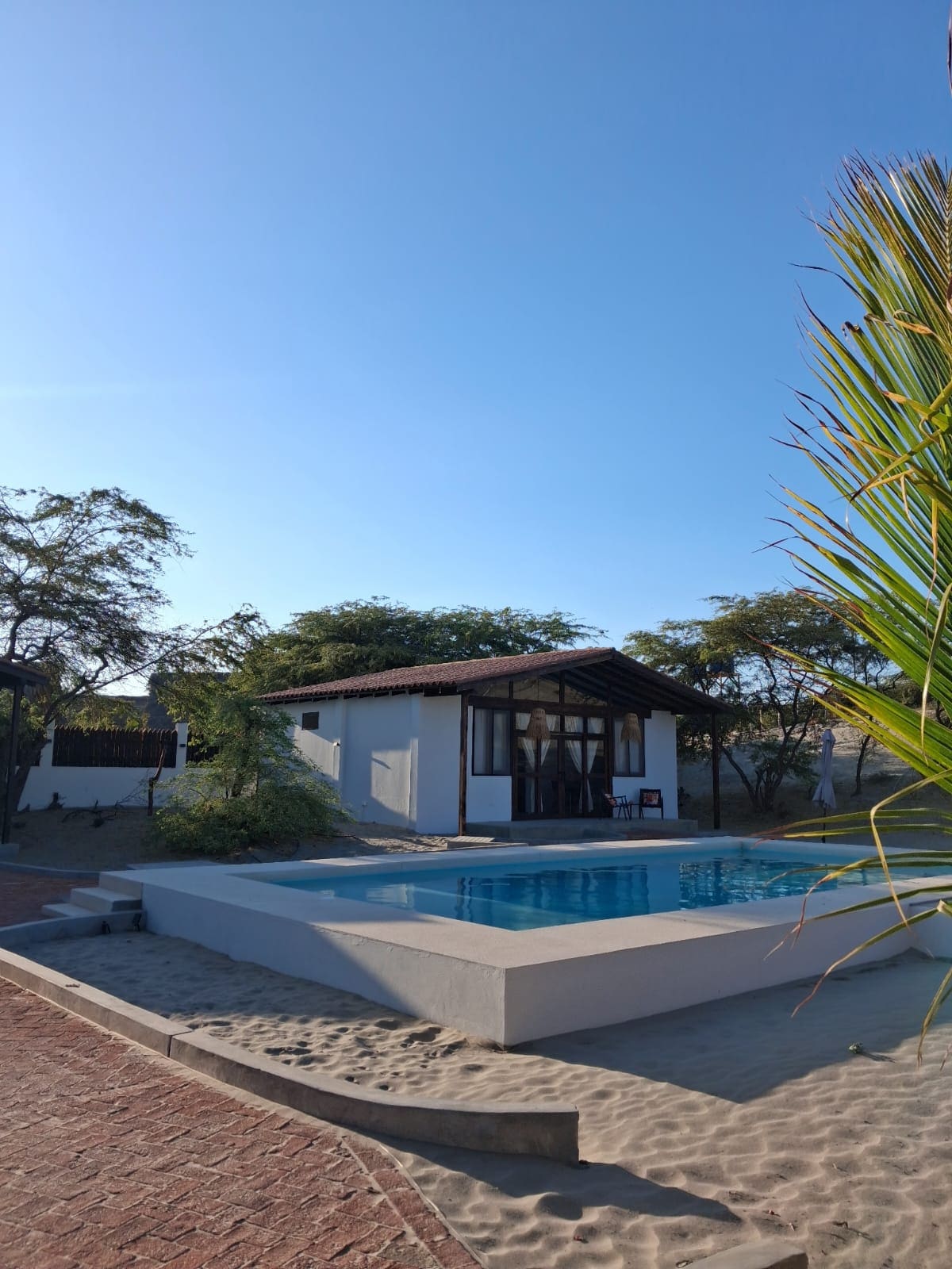 Es un bungalow de 2 dormitorios para 6 personas a pie del mar con un kitchenette muy cómodo, y una acogedora y amplia terraza, y rica piscina recirculada, escuchando las olas, mirando las ballenas y respirando aire fresco. Campo y playa a tus pies. La vacación perfecta! El número de habitaciones disponibles es 2, dependerá del número de huéspedes en tu grupo. El bungalow es solamente para ustedes y nadie más. Tendrás una estadía inolvidable de mar tibio y playa exclusiva para tu grupo.