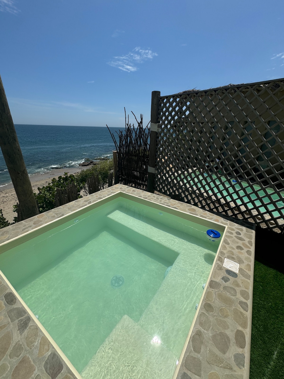 Somos una casa nueva!! ubicados en segunda fila en Las zona de Las Pocitas, Mancora bajo el concepto de barefoot luxury. La casa tiene un dormitorio con una cama king en el primer piso y un altillo con dos camas de plaza y media, baño con ducha al aire libre, cocina, piscina, terraza, area de fogata y area de hamacas. Contamos con una salida privada a la playa a 300 metros de distancia. Somos pet friendly y en la propiedad también vive una gatita llamada tigrita.