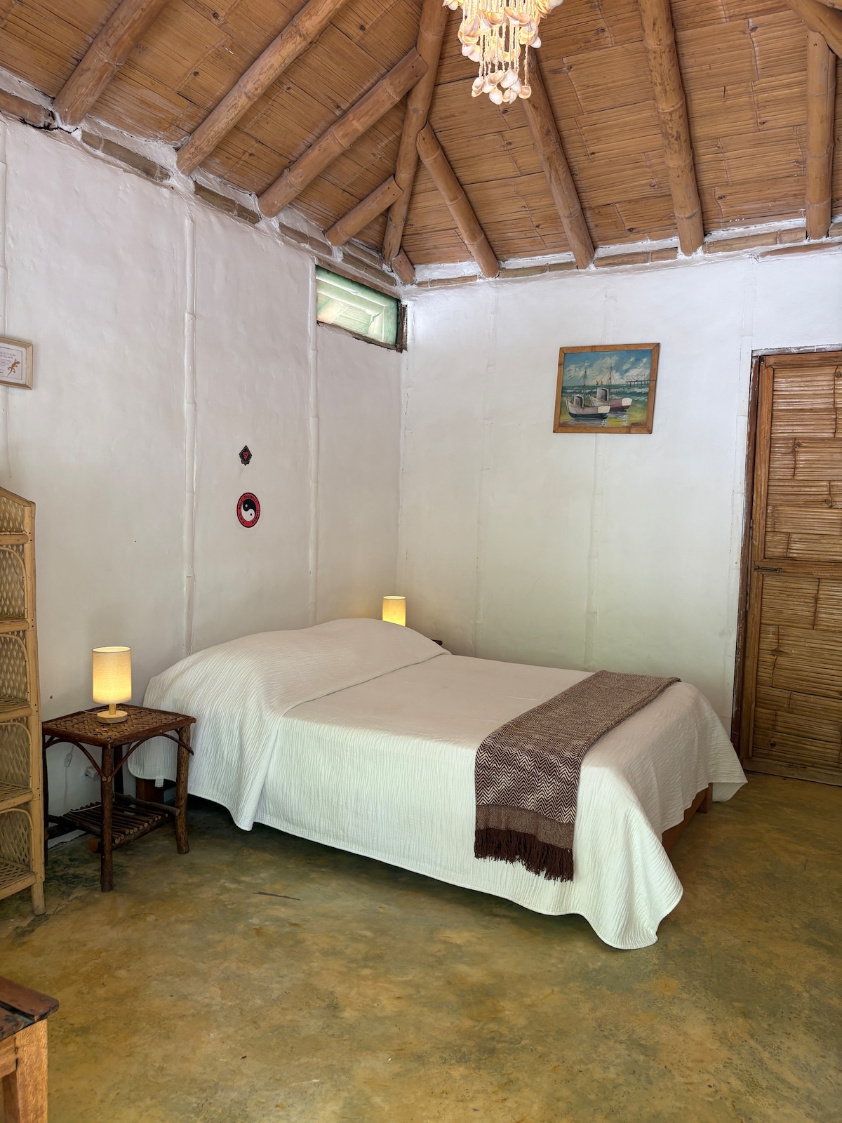 Una habitación matrimonial para 2 personas de 38m2 equipada con una cama kingsize, ubicada en el primer nivel al raz del mar, con una vista incomparable a los mejores atardeceres de nuestro país, cuenta con un clóset, baño privado, aire acondicionado y un pequeño jardín. Todas nuestras tarifas incluyen desayuno Alma el cual se sirve de 8:00am a 10:00am