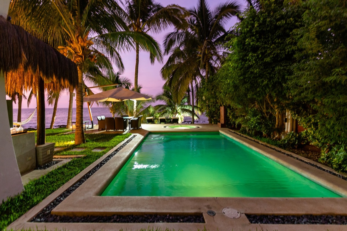“Welcome to CasaNorte! Our property offers 2500 square meters of privileged oceanfront views with spectacular sunsets and sunrises. You’ll enjoy a private 12x4 meter pool, a barbecue area, a kids’ playground, and even a small gym—all on the property. The beach has calm, warm waters perfect for water activities, swimming with turtles, snorkeling, and whale watching right from the comfort of the house. We can’t wait to welcome you!”