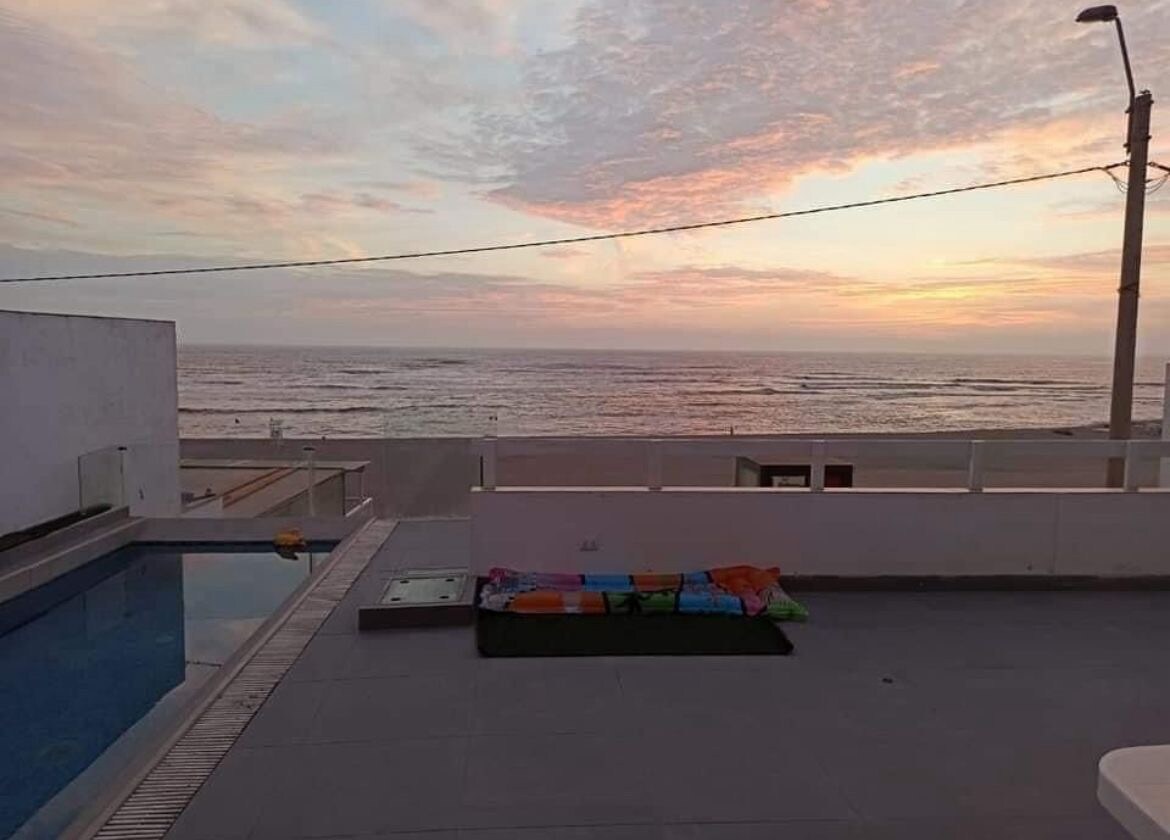 Preciosa casa con amplio jardín, palmeras y piscina hecha de rocas frente al mar con acceso directo a la playa, toda la casa mira al Mar. La zona cuenta con amplias vías para realizar caminatas , surfing, cycling y running. Cuenta con una piscina para los huéspedes y zona para realizar fogatas y parrilladas todo frente al Mar. Tiene el acceso más cercano a San Bartolo para diferentes servicios .
