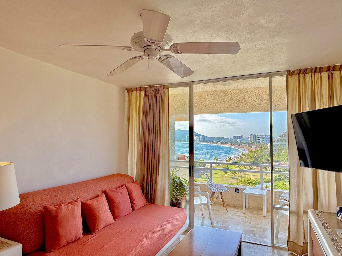 A lovely, beachfront get away from where one can comfortably relax, eat and sleep, when not enjoying the gorgeous beach and pool and all that Ixtapa has to offer. The Condo is located on the 6th floor and has a spectacular wall to wall picture window in the living room that slides open to fantastic mountain, golf course and sunrise views. Patio sliding doors lead to fabulous ocean and mountain views with amazing sunsets over the Pacific Ocean.