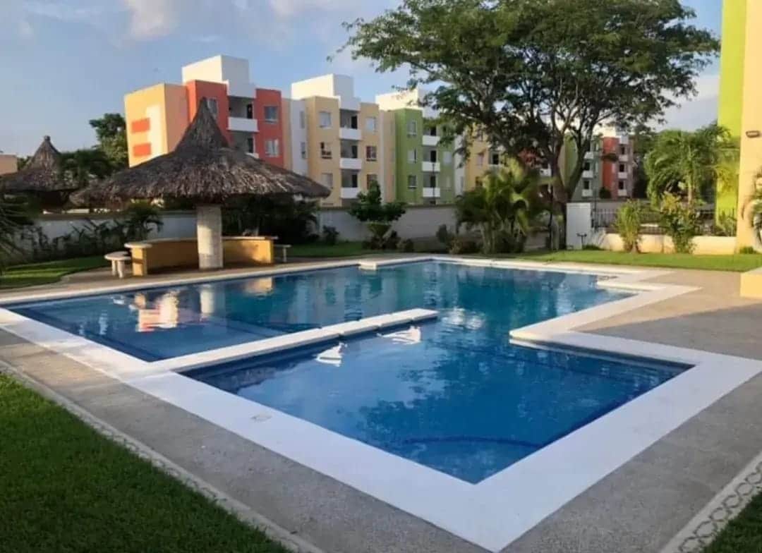 Ground floor apartment with all services and intact interiors after OTIS/JOHN. Huge pool with an amazing garden, private Jacuzzi, 24/7 security, 300 MB WIFI speed, and an equipped kitchen. Your private parking space is a few steps from the door. Located on the main Ave in the Diamante area, 7 min from the Aero and 1.2 km from the beach. 2 BRs and a living room with mini-splits, 2 bathrooms, Bluetooth speakers in the ceiling, a folding desk in the living room with views to the garden.