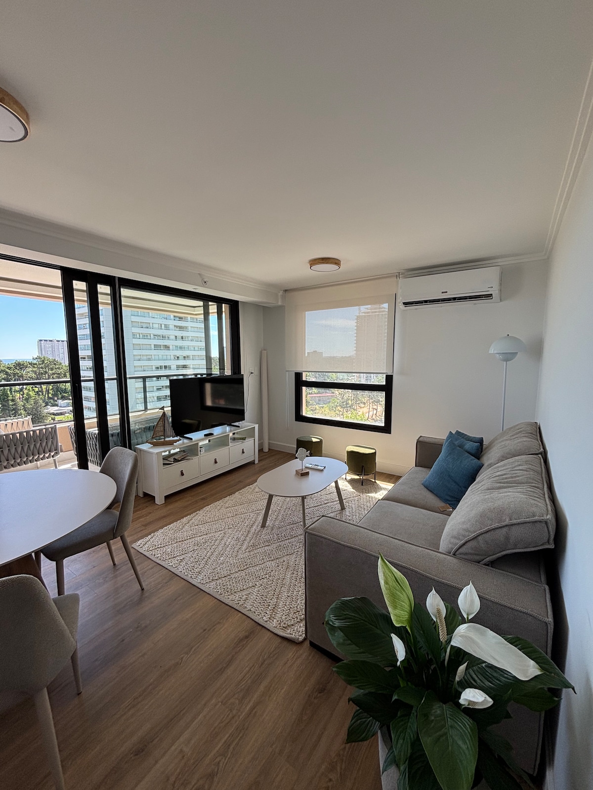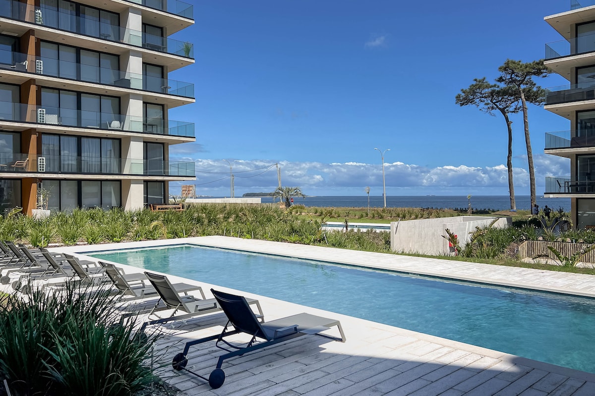 Disfruta de tu estadía en Punta del Este un un apartamento a estrenar en primer piso, con vista al bosque y la piscina. Muy luminoso, edificio excelentemente ubicado, con múltiples servicios, piscina climatizada, piscina abierta, gimnasio, barbacoa, cancha de césped sintético, microcine, sala de niños, adolescentes y adultos, garage cerrado propio, recepción 24 horas, lavadero,wifi, equipado para 4 personas, ropa de cama y toallas de baño, aire acondicionado,2 smart tv 40 "