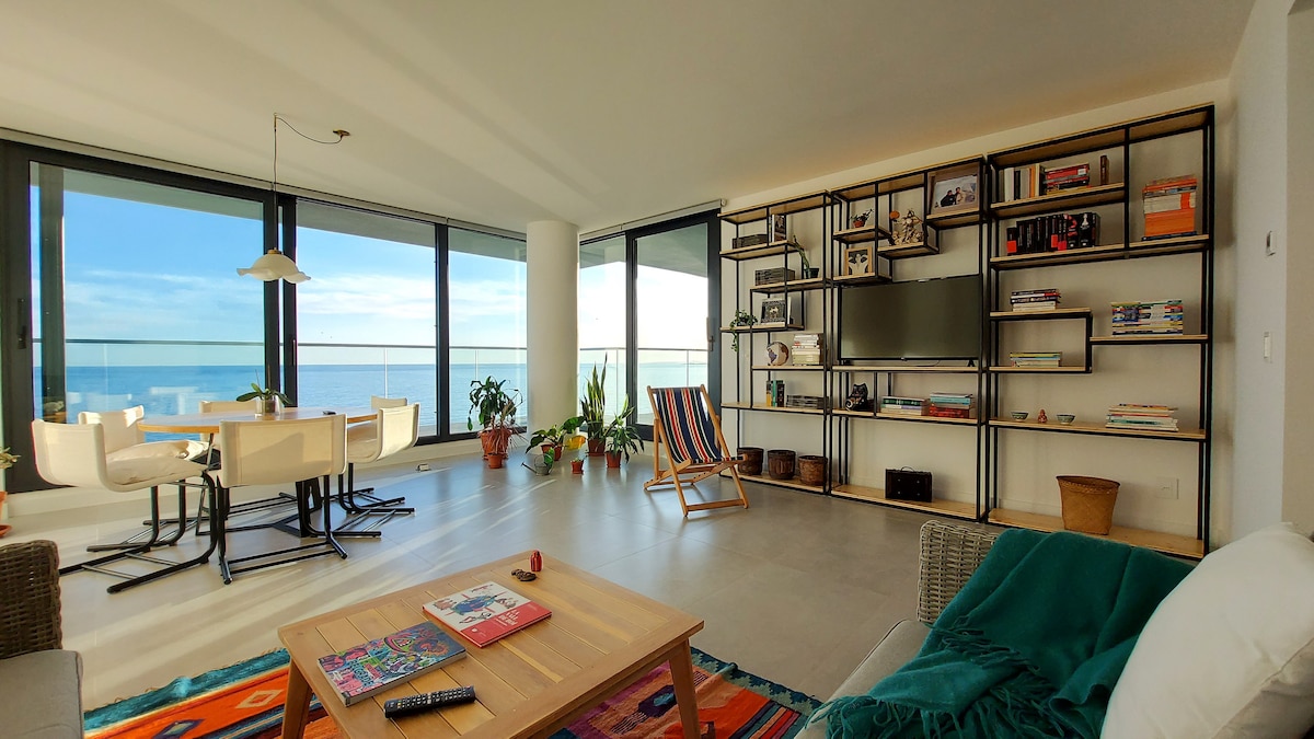 Enjoy a memorable visit when you stay in this unique place. Brand new beachfront apartment with a fantastic sea-view comprising all you expect from a luxury place: air-condition, underground heating, two bedrooms one with Queen size bed and other with two single beds. Two fully equipped bathrooms with high quality material, a beautiful kitchen furnished with all necessary equipment. Lovely terrace with frontal beach view furnished equipped with your own private barbecue. Laundry room