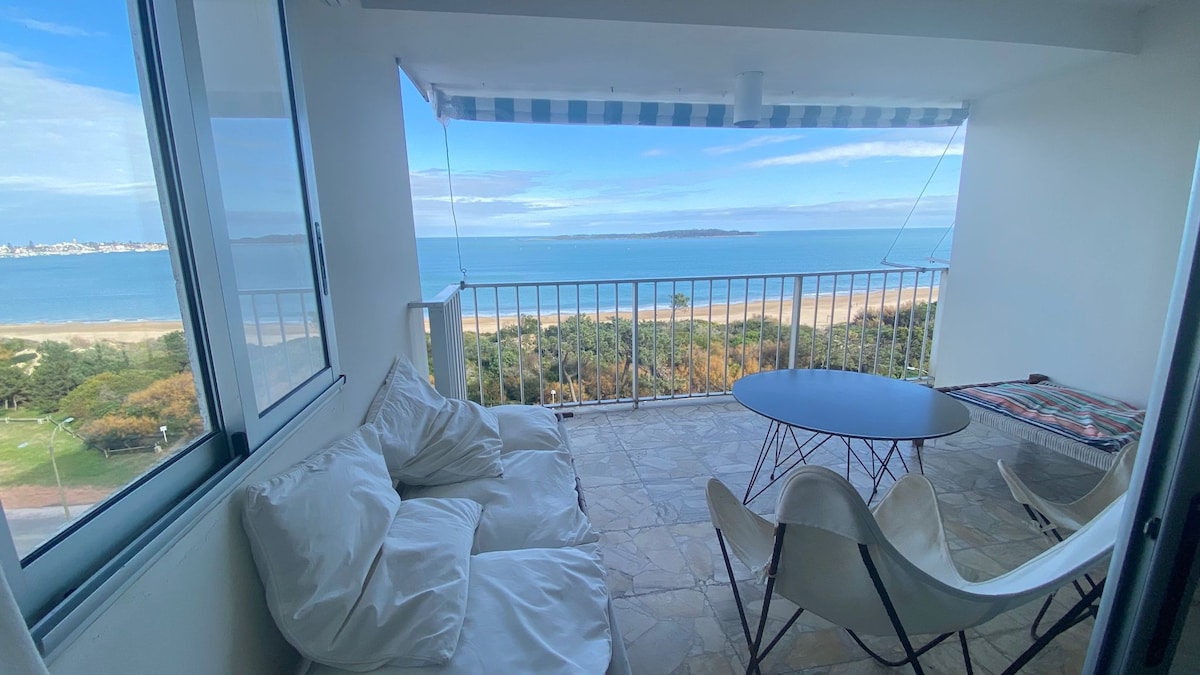 PRIMERA FILA FRENTE AL MAR en Playa Mansa y Parada 7, frente al parador Imarangatu. VISTA PANORÁMICA a la bahía y a la Isla Gorriti. Incluye servicio de mucamas TODOS LOS DIAS del año y servicio de playa en verano. TOTALMENTE RECICLADO EN 2023. TODO NUEVO. Todos los atardeceres en el balcón. 2 dormitorios, 2 baños, cocina con lavadero. Recepción 24 horas. Televisores SMART nuevos 2023. Wifi de fibra óptica (alta velocidad) de uso exclusivo del depto. Cochera Incluye sábanas y toallas.