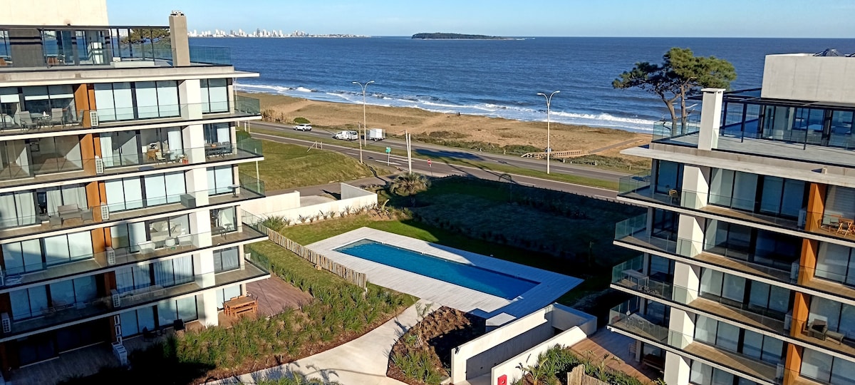Edificio estrenado en 2024 en ubicación inmejorable a metros del mar con SERVICIO DE PLAYA incluido en verano. Edificio MANSA BAY. Entorno tranquilo en Pinares de Punta del Este. Estacionamiento sobre la calle en lugar seguro de poca densidad, parrilleros con terrazas frente al mar, 3 piscinas climatizadas exteriores para adultos y menores en forma independiente, juegos de niños, gimnasio, guardia de seguridad y laundry. Servicio de Mucama opcional a cargo del inquilino. NO SE ACEPTAN MASCOTAS.