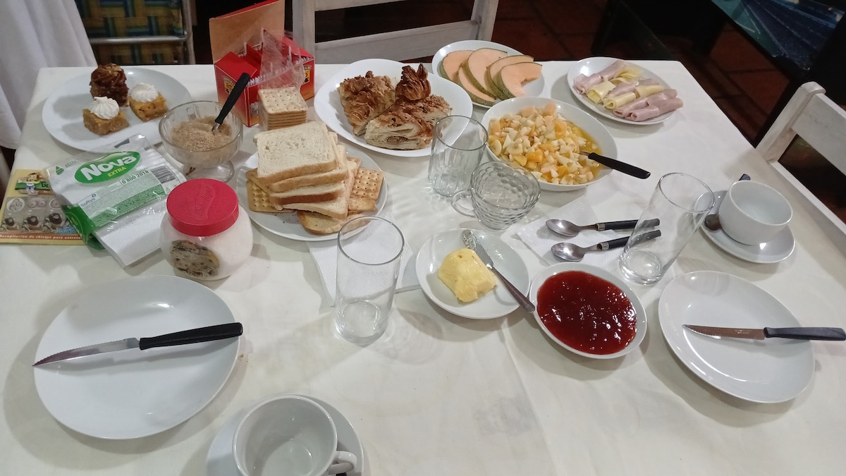 El terreno cuenta con la casa en la que vivimos y la casa de huéspedes. Está situado en una zona muy cómoda, porque se puede acceder a supermercados, farmacias, almacenes, heladería, panadería, carnicería, verdulería y frutería, parada de ómnibus en cuestión de pasos. Nos encontramos a aproximadamente 1 kilómetro de la playa y a unos 250 metros de la Laguna del Diario.
