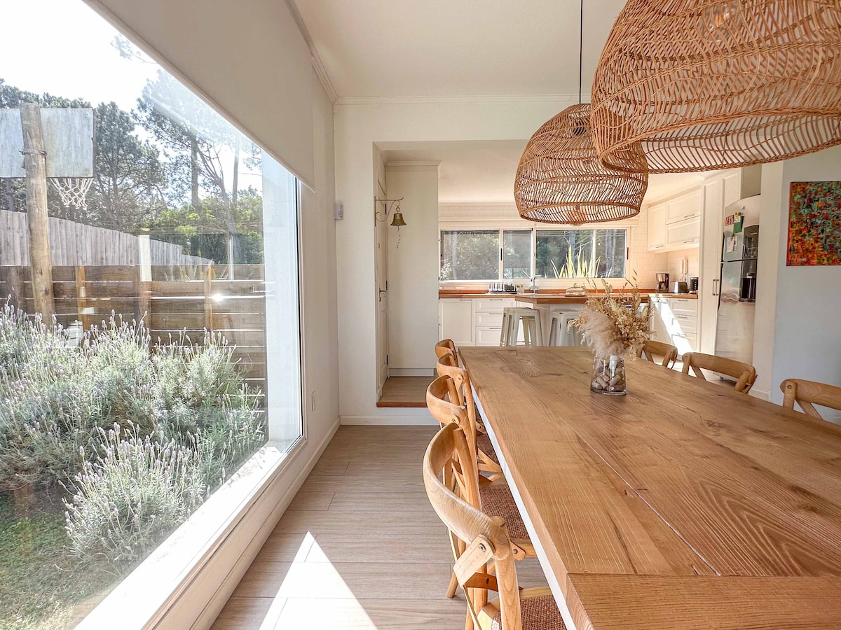 Relájate en este amplio y tranquilo espacio en Parque Burnett en Pinares, Punta del Este. Estamos rodeados de naturaleza y a solo 5 minutos del mar. Puedes descansar en nuestro encantador parque, escuchando el canto de los pájaros, tu música favorita en el gazebo o refrescándote en nuestra piscina climatizada. Con amplia parrilla para disfrutar de un asado! La casa cuenta con aire acondicionado frío/calor en todas las habitaciones.