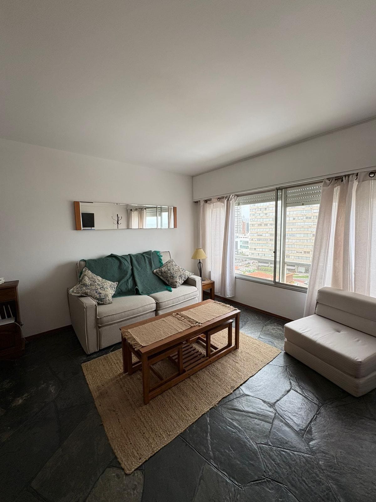 Apartamento muy lindo y cómodo (mira las evaluaciones). En la mejor ubicación de Punta del Este, ubicado en zona céntrica (gorlero). Muy cerca de todos los puntos de interés, 1 cuadra de playa brava y 3 de playa mansa. También muy cerca de la terminal. Habitación con cama matrimonial (se deja tendida con sábanas) y living con sofá cama de 1 plaza (se dejan sábanas en el ropero). Con piscina habilitada en verano (desde 8 de diciembre). Parking cerrado. Servicio de mucama.