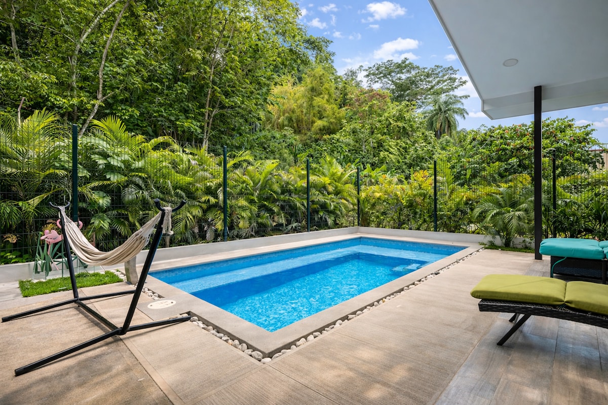 Uno de los primeros Airbnbs en Jaco, Beach Bungalow desde 2015 hospeda personas del mundo entero. "Un pedacito del paraíso" es como los huéspedes dicen en sus evaluaciones. Bungalow totalmente equipado, confortable, colchones nuevos, limpieza 5 estrellas durante esos 7 años y ubicado en una zona muy tranquila de Jaco, tan solo a 2 minutos en carro hacia la playa y centro. Local perfecto para descansar en familia o pareja y disfrutar de una encantadora piscina con catarata y jets de hidromasaje.