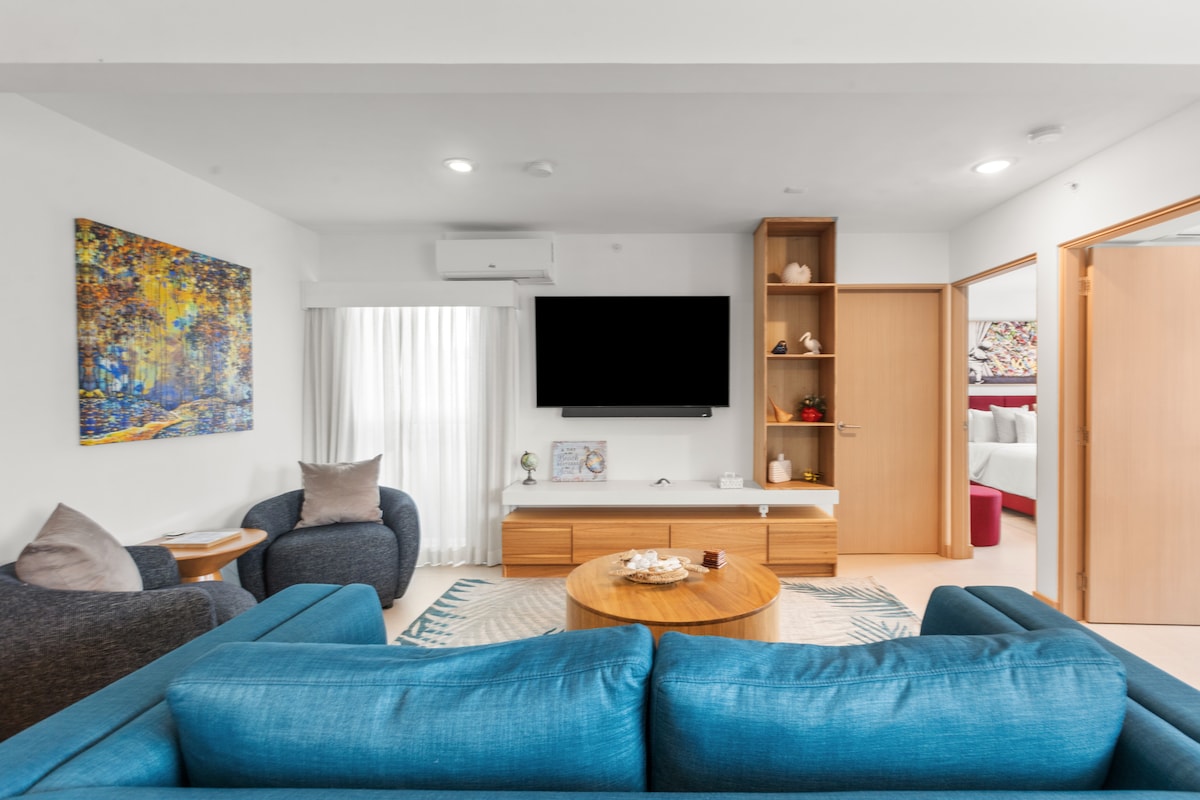 现代公寓,带电影院|步行2分钟即可抵达曼塔斯海滩