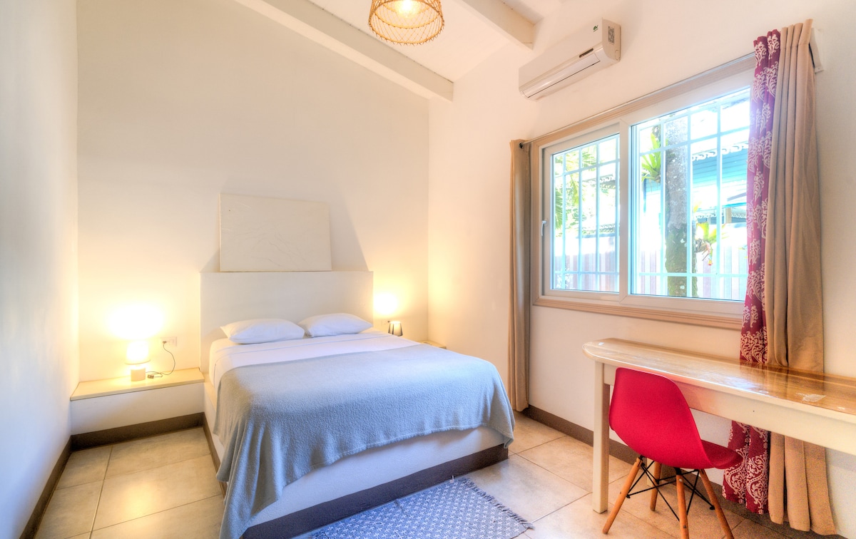 Unplug and unwind in this spacious, serene villa — perfect for families or groups of friends. Enjoy a private tropical setting, open kitchen and living area designed for sharing special moments. Two bedrooms with A/C, ceiling fans, and en-suite bathrooms. Includes fiber-optic WiFi, on-site parking, shared laundry area, and daily bike rentals. Just 500 meters from Playa Negra and minutes from downtown Puerto Viejo. Personalized attention and tailored experiences available.