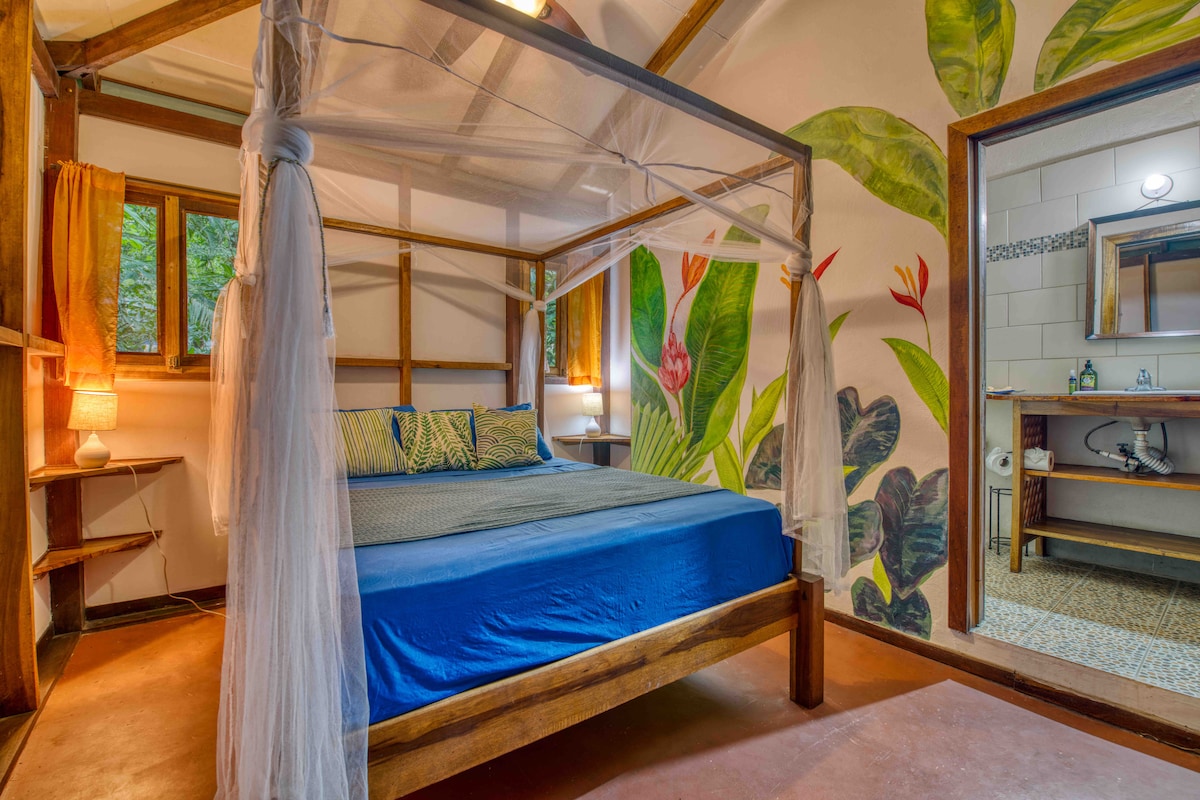 This new accommodation (Cocles Beach Casita) is located within the surroundings of a villa with a 5* rating and Super host for many consecutive years (Cocles Beach Villa). The cabin is located in the rainforest and only 5 minutes walk to Cocles beach and pristine Bluff Beach (just in front of the tiny Pirripli Island.) We currently have a 100 MB stable connection so it is a great option for people who need to work during their holidays. The access road is flat and no 4x4 is needed