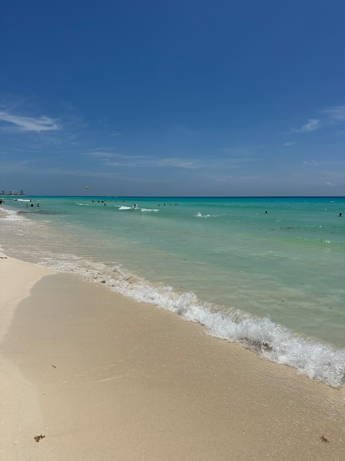 This beautiful apartment will make you enjoy paradise, you can feel the white sand of the Caribbean, enjoy the beautiful beach and have incredible views from sunrise to sunset. It is ideal for families, couples, friends and honeymooners. It has a privileged location we are a few steps from Plaza Kukulkán, Plaza la Isla, 10 minutes from the most popular nightclub area, and 20 minutes from the airport.