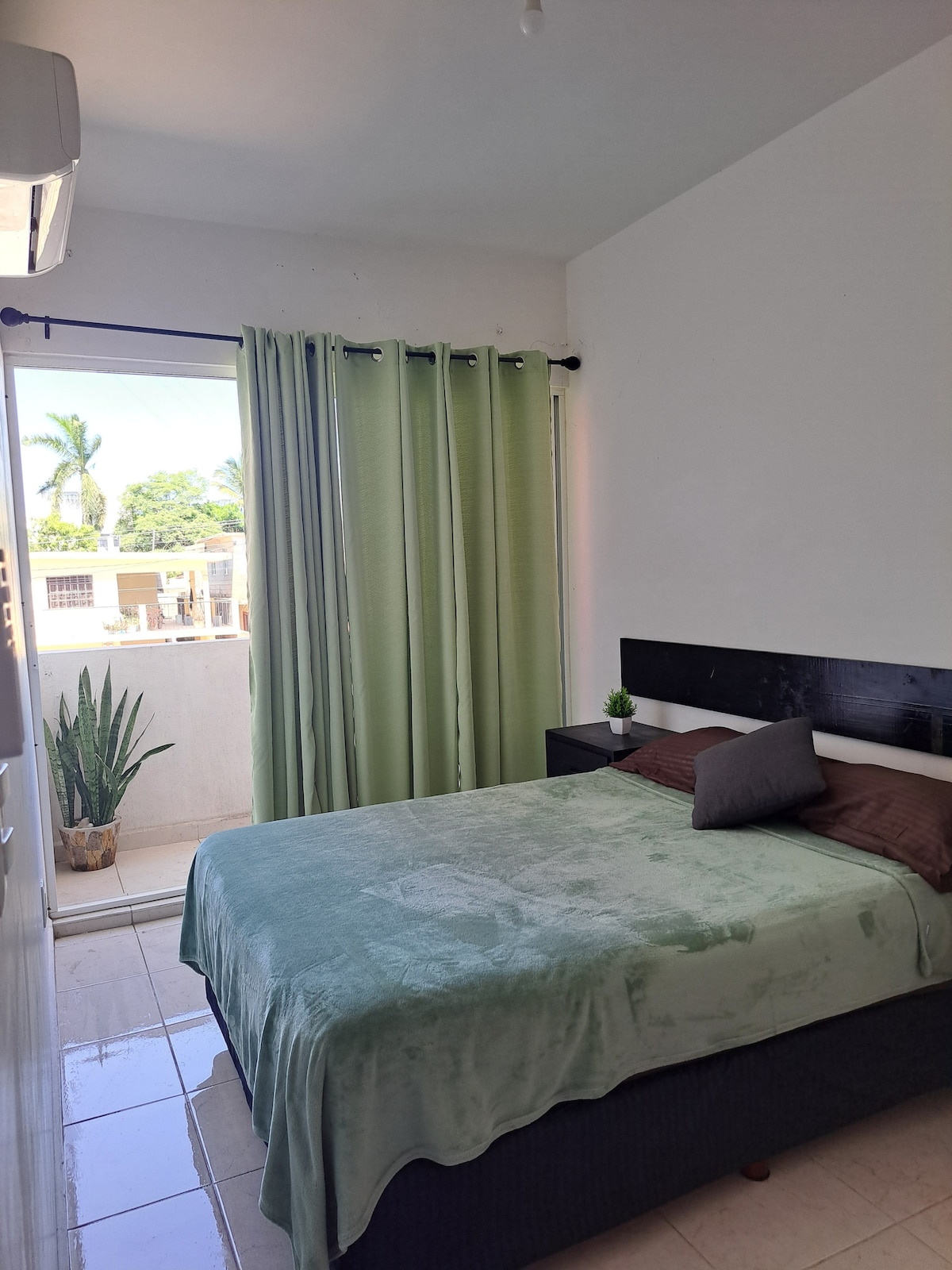 "Nuestro departamento esta a 5 minutos en carro de playa Miramar. Cuenta con cocina equipada con estufa, horno, licuadora, cafetera, utensilios básicos de cocina; Un baño completo con agua caliente. La habitación principal cuenta con MiniSplit, 1 camas matrimonial y una Queen sice y closet amplio. Otra habitación con una cama Quin Size (sin aire acondicionado) . Sala de estar con una pantalla de 40 pulgadas, WIFI, y tv por cable. terraza con asador, mesas y sillas.