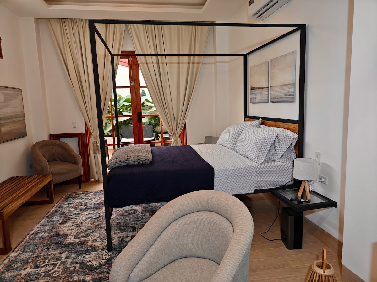 Welcome to our Bright Private Loft in Olon, Ecuador! Just 800m from the beach, our property offers three private apartments with private bathrooms and fully equipped kitchens. Enjoy the shared pool and relax in our curated Loft. It features a queen bed, private bathroom, and a fully equipped kitchen with complementary local coffee. Stay comfortable with A/C, WiFi, and self-check-in. Explore the nearby beaches and immerse yourself in the laid-back coastal lifestyle. Book your stay today!