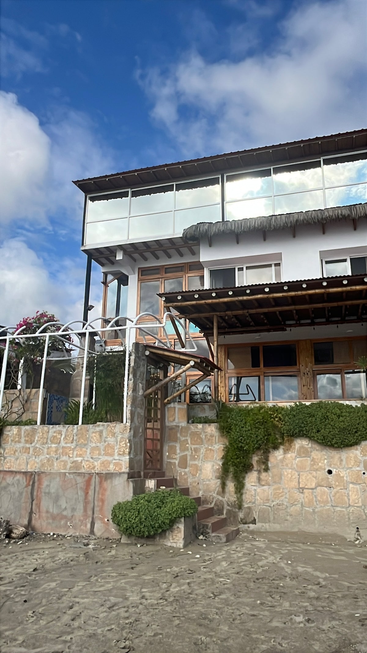 Somos un resort privado frente al mar en la zona tranquila de Montañita. Quédate en este alojamiento único y disfruta del sonido del mar y de la naturaleza. Tenemos 9 cabañas privadas cada una equipada y bien decorada para su mayor comodidad, todas con a/c y baño privado. Estamos rodeados de areas verdes, arboles, palmeras, tenemos una piscina, una area social frente al mar y varias zonas comunes de hamacas. Parqueo, seguridad 24 horas. Ofrecemos servicio de cocina y bar bajo requerimiento.