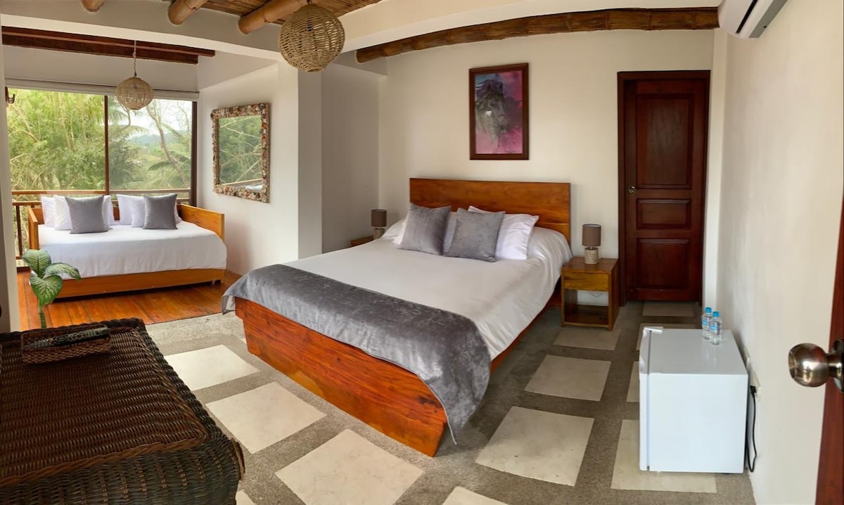 Spacious room with an ocean view and 3 Double beds. Immerse yourself in our award-winning bamboo tree house nestled in the sweet jungle, overlooking the legendary Surf Town of Ayampe, Ecuador! The perfect getaway to unplug, digitally detox or get creative and inspired by the natural surroundings and EPIC VIBES! Enjoy cooking delicious meals in our jungle kitchen!
